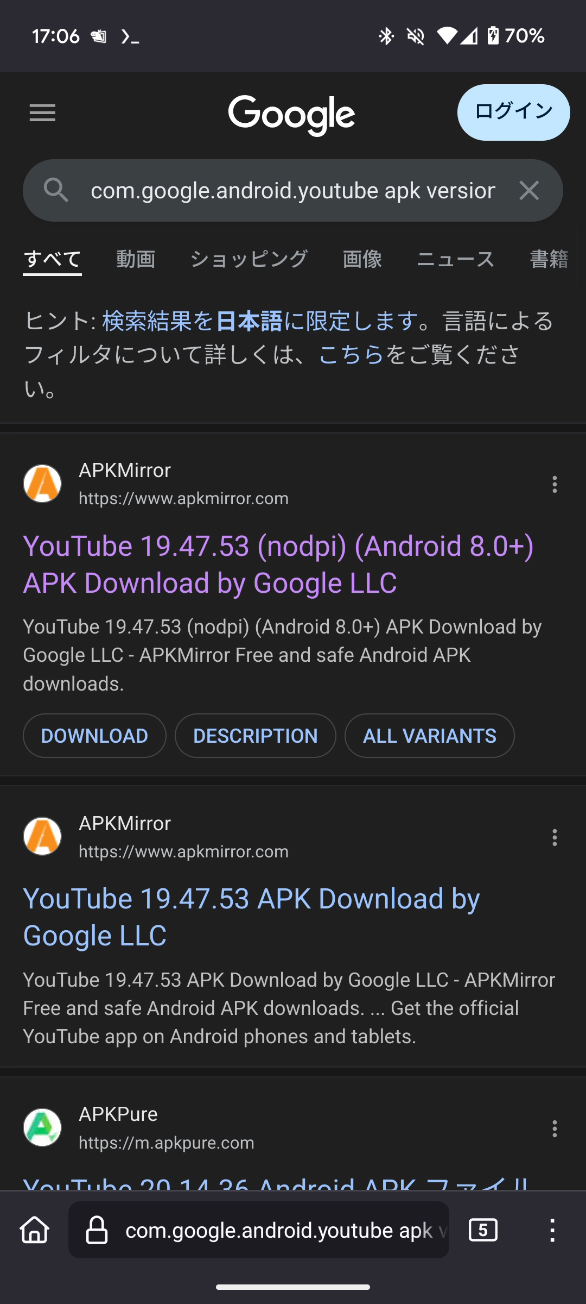 APKMirrorが早くていいのでAPKMirrorをタップして